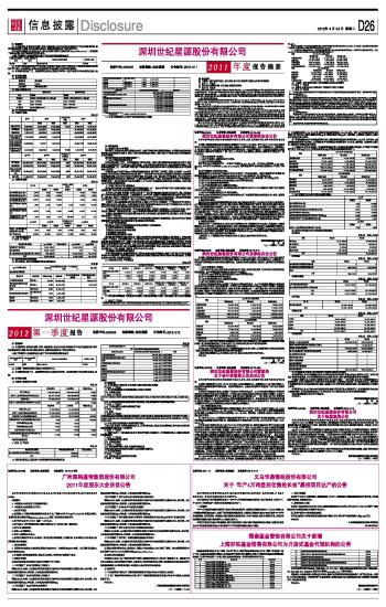 证券代码:000005 证券简称:世纪星源 公告编号:2012-011 深圳世纪星源股份有限公司2011年度报告摘要 2012-04-24 来源:证券时报网 作者: