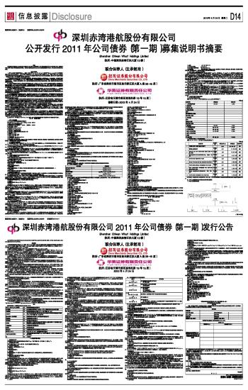 深圳赤湾港航股份有限公司2011年公司债券(第一期)发行公告