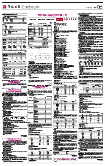 深圳南山热电股份有限公司2011年度报告摘要