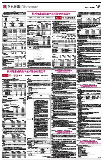 杭州海康威视数字技术股份有限公司2012第一季度报告