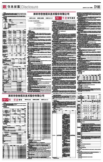 深圳市佳创视讯技术股份有限公司2011年度报告摘要