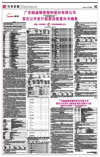 广东顺威精密塑料股份有限公司首次公开发行A股初步询价及推介公告