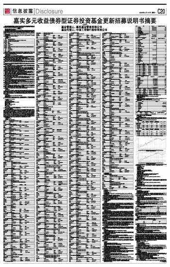基金管理人:嘉实基金管理有限公司 基金托管人:中国工商银行股份有限公司 嘉实多元收益债券型证券投资基金(以下简称“本基金”)根据2008年6月27日中国证券监督管理委员会《关于核准嘉实多元收益债券型证券投资基金募集的批复》(证监许可[2008]865号)核准进行募集。本基金基金合同于2008年9月10日起生效,自该日起基金管理人正式开始管理本基金。 重要提示 投资有风险,投资者申购本基金时应认真阅读本招募说明书。 基金的过往业绩并不预示其未来表现。 本摘要根据基金合同和基金招募说明书编写,并经中国证监会核准。基金合同是约定基金当事人之间权利、义务的法律文件。基金投资人自依基金合同取得基金份额,即成为基金份额持有人和本基金合同的当事人,其持有基金份额的行为本身即表明其对基金合同的承认和接受,并按照《证券投资基金法》、《运作办法》、基金合同及其他有关规定享有权利、承担义务。基金投资人欲了解基金份额持有人的权利和义务,应详细查阅基金合同。 基金管理人承诺依照恪尽职守、诚实信用、谨慎勤勉的原则管理和运用基金资产,但不保证基金一定盈利,也不保证最低收益。 本摘要已经基金托管人复核。本摘要所载内容截止日为2012年3月10日(特别事项注明除外),有关财务数据和净值表现截止日为2012年3月31日(未经审计)。 一、基金管理人 (一)基金管理人概况 1.基本情况 ■ 嘉实基金管理有限公司经中国证监会证监基字[1999]5号文批准,于1999年3月25日成立,是中国第一批基金管理公司之一,是中外合资基金管理公司。公司注册地上海,总部在北京并设深圳、成都、杭州、青岛、南京、福州、广州分公司。公司获得首批全国社保基金、企业年金投资管理人、QDII资格和特定资产管理业务资格。 嘉实基金管理有限公司无任何受处罚记录。 (二)主要人员情况 1.基金管理人董事、监事、总经理及其他高级管理人员基本情况 安奎先生,董事长,大学本科,中共党员,曾任吉林农业机械研究所主任;吉林省信托投资公司外经处处长、香港吉信有限公司总经理;吉林省证券公司总经理;东北证券有限责任公司监事长;吉林天信投资公司总经理;中诚信托有限责任公司副总经理。2011年8月5日起任嘉实基金管理有限公司董事长。 赵学军先生,董事、总经理,中共党员,经济学博士。曾就职于天津通信广播公司、外经贸部中国仪器进出口总公司、北京商品交易所、天津纺织原材料交易所、商鼎期货经纪有限公司、北京证券有限公司、大成基金管理有限公司。2000年10月至今任嘉实基金管理有限公司董事、总经理。 高方先生,董事,大学本科,中共党员,高级经济师。曾任中国建设银行总行副处长,外企服务总公司宏银实业公司副总经理。1996年9月至今历任中诚信托有限责任公司总裁助理、副总裁,现任中诚信托有限责任公司副总裁。 Wolfgang Matis 先生,董事,德国籍,法兰克福商学校经济专业(Frankfurt Business School of Economics)。曾任德意志银行全球固定收益负责人、全球市场负责人,董事总经理(MD)。现任德意志资产管理公司(法兰克福)董事会成员、CEO兼发言人。 Mark Cullen先生,董事,澳大利亚籍,澳大利亚莫纳什大学经济政治专业学士。曾任达灵顿商品(Darlington Commodities)商品交易主管,贝恩(Bain&Company)期货与商品部负责人,德意志银行(纽约)全球股票投资部首席运营官、MD。现任德意志资产管理(纽约)全球首席运营官、MD。 韩家乐先生,董事。1990年毕业于清华大学经济管理学院,硕士研究生。1990年至今任海问证券投资咨询有限公司总经理;1994年至今任北京德恒有限责任公司总经理;2001年11月至今任立信投资有限责任公司董事长。 王巍先生,独立董事,美国福特姆大学文理学院国际金融专业博士。曾任职于中国建设银行辽宁分行。曾任中国银行总行国际金融研究所助理研究员,美国化学银行分析师,美国世界银行顾问,中国南方证券有限公司副总裁,万盟投资管理有限公司董事长。2004至今任万盟并购集团董事长。 张维炯先生,独立董事、中共党员,教授、加拿大不列颠哥伦比亚大学商学院博士。曾任上海交通大学动力机械工程系教师,上海交通大学管理学院副教授、副院长。1997年至今任中欧国际工商学院教授、副院长。 汤欣先生,独立董事,中共党员,法学博士。1998年9月至2000年6月在北京大学法学学科从事博士后研究工作,2000年7月至今历任清华大学法学院讲师、副教授。现任清华大学法学院副教授。 朱蕾女士,监事,中共党员,硕士研究生。曾任首都医科大学教师,中国保险监督管理委员会主任科员,国都证券有限责任公司高级经理,中欧基金管理有限公司发展战略官、北京代表处首席代表、董事会秘书。2007年10月至今任中诚信托有限责任公司国际业务部总经理。 穆群先生,监事,经济师,硕士研究生。曾任西安电子科技大学助教,长安信息产业(集团)股份有限公司董事会秘书,北京德恒有限责任公司财务主管。2001年11月至今任立信投资有限公司财务总监。 王利刚先生,监事,经济学学士。2001年2月至今,就职于嘉实基金管理有限公司综合管理部、人力资源部,历任人力资源部副总监、总监。 宋振茹女士,副总经理,中共党员,硕士研究生,经济师。1981年6月至1996年10月任职于中办警卫局。1996年11月至1998年7月于中国银行海外行管理部任副处长。1998年7