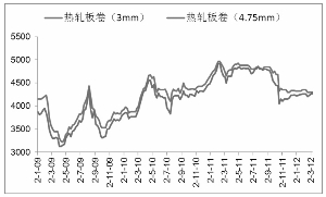 数据来源:首钢迁钢公司最近三年以来,热轧板材价格震荡上升。2011年,热轧板材总体价格水平与2010年基本持平,月度则呈现波动运行态势:上半年,铁矿石等原料成本上涨推高钢材价格小幅上涨;下半年,全球金融市场动荡导致大宗商品价格迅速下跌,国内钢材需求减弱,价格加速下跌。10月份以来跌幅扩大,跌速加快。 图:2009年以来热轧板卷价格说明(单位:元/吨) ■ 数据来源:WIND资讯、中钢协,中信证券整理,截至2011年12月底 2、首钢迁钢公司主要产品的销售收入情况