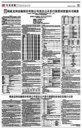 福建龙洲运输股份有限公司首次公开发行股票招股意向书摘要FUJIAN LONGZHOU TRANSPORTATION CO., LTD、 |