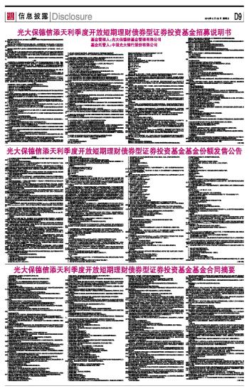 光大保德信添天利季度开放短期理财债券型证券投资基金招募说明书 2012-05-25 来源:证券时报网 作者: