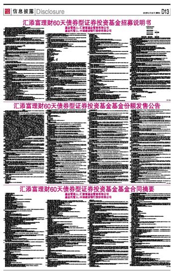汇添富理财60天债券型证券投资基金基金份额发售公告