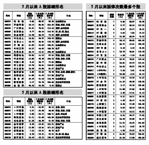 (专题数据由上海聚源数据服务有限公司提供,异动个股上榜数据截至5月30日,数据来源于上市公司公告,若有出入,请以公告为准) 沪指昨日以下跌宣告5月行情的结束,整个5月大盘表现相对比较平稳,上证指数、深成指、沪深300等主要指数月度涨跌幅均不超过1%,在大盘呈现窄幅波动的同时,个股却频频出彩,政策利好个股、各类概念股轮番上涨,为整体平淡的市场增添了一抹亮彩。 数据显示,5月尽管沪指累计还出现1%的跌幅,但却有超半数个股出现逆市上涨,科学城、广州药业、国恒铁路等27只个股期间累计涨幅超过30%,其中,科学城、永生投资等8只个股涨幅在50%以上,科学城更是连续上涨,5月股价几乎翻番,成为表现最强的个股;涨幅在10%至30%之间的共有346只股,近千只股涨幅在10%以内。 5月大盘表现平庸,个股却异常精彩,这与近期市场热点频繁切换不无关系,5月份政策利好推动、券商创新、节能环保等热点的轮动,都推动了相关个股的大幅飙升。 上月初举行的券商创新发展研讨会,明确了未来证券公司创新发展的11大类措施。在业务创新的大背景下,券商板块近期的表现明显活跃,西部证券、西南证券等个股均出现大幅上涨,西部证券5月累计上涨了27.66%,并多次出现异动,累计上榜公开信息次数高达21次,成为两市上榜次数做多的个股。 而受“十二五”期间,中国环保累计投入将超过5万亿消息的提振,节能环保股开能环保、巴安水务、万邦达等也有不俗的表现。 5月份涉矿概念股也是两市的亮点之一,科学城、永安林业等个股沾矿即涨,5月4日科学城公布了公司重大资产重组收购玉龙矿业的公告之后,股价随之出现了连续的大幅上涨,5月共有7个交易日股价出现涨停;永安林业在涉矿消息的刺激下频频异动,5月15日以来累计上涨76%,尽管期间公司发布了澄清公告,但仍然受到市场的热捧,而在上半个月永安林业的股价还是下跌的。 当然,目前最大利好莫过于新一轮经济刺激计划,23日召开的国务院常务会议强调,推进“十二五”规划重大项目按期实施,启动一批事关全局、带动性强的大项目,在此利好的推动下,水泥、建筑建材、水利等多个板块逞强,中铁二局、国恒铁路等相关个股都有不错的涨幅,数据显示,中化岩土5月股价累计涨幅近六成,中铁二局、同力水泥等也在利好的推动下股价出现不止一个的涨停。 尽管5月亮点频出,但却仍有部分股出现不小的跌幅,五一期间退市新政的发布,使得ST板块面临着退市的冲击,多只个股曾出现连续跌停,5月两市跌幅榜名单中,跌幅最大的前3只个股均为ST股。(余莉) 本版导读: