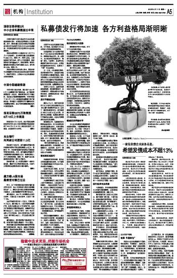 证券时报记者 游芸芸 在深沪交易所日前已通过的中小企业私募债券备案申请中,有国信证券承销的3只私募债。其中,深圳市嘉力达实业有限公司私募债成为深交所完成发行的首只中小企业私募债券,并有望成为深交所首只挂牌的中小企业私募债券。 国信证券承销的3只债券中有2只已于6月8日启动发行,其中深圳市嘉力达私募债发行5000万元、期限3年、利率9.99%,目前该债券已发行完毕,发行人已收到款项,债券投资者主要为基金专户、券商自营等;深圳市德福莱首饰有限公司发行规模2亿元;发行利率9.30%,期限3年。 国信证券相关业务负责人表示,国信证券今后将继续在中国证券业协会和交易所的指导下,积极寻找项目,以推动中小企业私募债券业务快速发展。 本版导读: