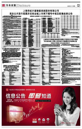 上海华虹计通智能系统股份有限公司首次公开发行股票并在创业板上市网下摇号中签及配售结果公告