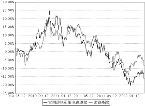 2、自基金合同生效以来富国通胀通缩主题轮动股票型证券投资基金累计份额净值增长率与业绩比较基准收益率的历史走势对比图 ■ 注:(1)截止日期为2012年3月31日。 (2)本基金于2010年5月12日成立,建仓期自2010年5月12日至2010年11月11日共6个月,建仓期结束时各项资产配置比例均符合基金合同约定。 十三、费用概览 (一)与基金运作有关的费用 1、与基金运作有关费用列示 (1)基金管理人的管理费; (2)基金托管人的托管费; (3)《基金合同》生效后与基金相关的信息披露费用; (4)《基金合同》生效后与基金相关的会计师费、律师费和诉讼费; (5)基金份额持有人大会费用; (6)基金的证券交易费用; (7)基金的银行汇划费用; (8)按照国家有关规定和《基金合同》约定,可以在基金财产中列支的其他费用。 本基金终止清算时所发生费用,按实际支出额从基金财产总值中扣除。 2、基金费用计提方法、计提标准和支付方式 (1)基金管理人的管理费 本基金的管理费按前一日基金资产净值的1.5%年费率计提。管理费的计算方法如下: H=E×1.5%÷当年天数 H为每日应计提的基金管理费 E为前一日的基金资产净值 基金管理费每日计算,逐日累计至每月月末,按月支付,由基金管理人向基金托管人发送基金管理费划款指令,基金托管人复核后于次月前2个工作日内从基金财产中一次性支付给基金管理人。若遇法定节假日、公休假等,支付日期顺延。 (2)基金托管人的托管费 本基金的托管费按前一日基金资产净值的0.25%的年费率计提。托管费的计算方法如下: H=E×0.25%÷当年天数 H为每日应计提的基金托管费 E为前一日的基金资产净值 基金托管费每日计算,逐日累计至每月月末,按月支付,由基金管理人向基金托管人发送基金托管费划款指令,基金托管人复核后于次月前2个工作日内从基金财产中一次性支取。若遇法定节假日、公休日等,支付日期顺延。 上述(一)基金费用的种类中第3-7项费用,根据有关法规及相应协议规定,按费用实际支出金额列入当期费用,由基金托管人从基金财产中支付。 3、不列入基金费用的项目 下列费用不列入基金费用: (1)基金管理人和基金托管人因未履行或未完全履行义务导致的费用支出或基金财产的损失; (2)基金管理人和基金托管人处理与基金运作无关的事项发生的费用; (3)《基金合同》生效前的相关费用,包括但不限于验资费、会计师和律师费、信息披露费用等费用; (4)其他根据相关法律法规及中国证监会的有关规定不得列入基金费用的项目。 4、费用调整 基金管理人和基金托管人协商一致后,可根据基金发展情况调整基金管理费率、基金托管费率等相关费率。 调高基金管理费率、基金托管费率等费率,须召开基金份额持有人大会审议;调低基金管理费率、基金托管费率等费率,无须召开基金份额持有人大会。 基金管理人必须于新的费率实施日前依照《信息披露管理办法》的有关规定在至少一种指定报刊和基金管理人网站上公告。 (二)与基金销售有关的费用 1、申购费用 本基金的申购费用由基金申购人承担,不列入基金财产,主要用于本基金的市场推广、销售、注册登记等各项费用。 本基金申购费率按申购金额递减。投资者在一天之内如果有多笔申购,适用费率按单笔分别计算。具体如下: