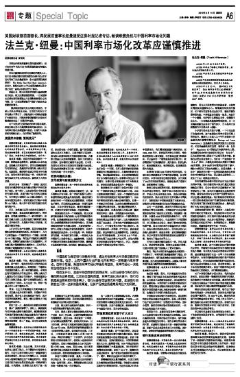 法兰克·纽曼:中国利率市场化改革应谨慎推进