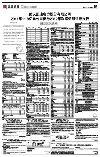 | 武汉凯迪电力股份有限公司 2011年11.8亿元公司债券2012年跟踪信用评级报告 | 2012-06-28 | |