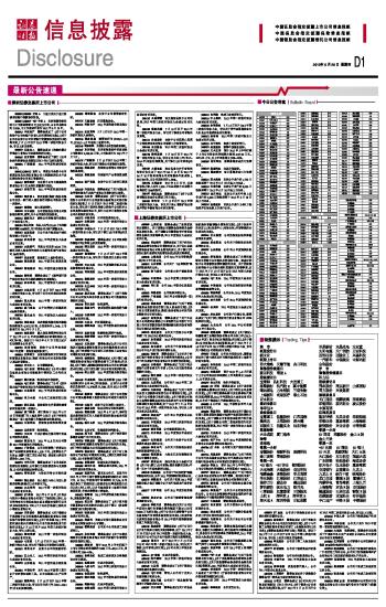 深市主板 000002 万科A D16 000017 *ST中华A D15 000043 中航地产 D25 000059 辽通化工 D28 000065 北方国际 D20 000415 渤海租赁 D3 000417 合肥百货 D38 000501 鄂武商A D27 000507 珠海港 D32 000540 中天城投 D3 000543 皖能电力 D17 000554 泰山石油 D21 000562 宏源证券 A12 000568 泸州老窖 D38 000597 东北制药 D25 000600 建投能源 D3 000619 海螺型材 D34 000620 新华联 D23 000663 永安林业 D24 000679 大连友谊 D13 000701 厦门信达 D16 000766 通化金马 D38 000790 华神集团 D34 000792 盐湖股份 D32 000793 华闻传媒 D21 000816 江淮动力 D29 000818 方大化工 D15 000837 秦川发展 D28 000838 *ST国兴 D44 000881 大连国际 D32 000885 同力水泥 D15 000895 双汇发展 D29 000905 厦门港务 D13 000910 大亚科技 D4 000929 兰州黄河 D16 000931 中关村 D4 000939 凯迪电力 D3 000952 广济药业 D3 000970 中科三环 D16 000976 春晖股份 D21 000981 银亿股份 D16 000995 ST皇台 D17 深市中小板 002009 天奇股份 D24 002023 海特高新 D40 002029 七匹狼 D32 002052 同洲电子 D28 002061 江山化工 D42 002078 太阳纸业 D37 002092 中泰化学 D13 002093 国脉科技 D24 002099 海翔药业 A12 002115 三维通信 D21 002121 科陆电子 D21 002144 宏达高科 D21 002146 荣盛发展 D40 002149 西部材料 D44 002167 东方锆业 D15 002175 广陆数测 D21 002203 海亮股份 D42 002231 奥维通信 D44 002243 通产丽星 A12 002259 升达林业 D38 002263 大东南 D4 002273 水晶光电 D39 002277 友阿股份 D20 002289 宇顺电子 D16 002290 禾盛新材 D17 002295 精艺股份 D38 002297 博云新材 D40 002301 齐心文具 D20 002302 西部建设 D40 002314 雅致股份 D20 002318 久立特材 A12 002324 普利特 D16 002329 皇氏乳业 D25 002348 高乐股份 D19 002358 森源电气 A10 002359 齐星铁塔 D38 002385 大北农 D42 002398 建研集团 D17 002421 达实智能 D42 002426 胜利精密 D28 002427 尤夫股份 D20 002431 棕榈园林 D25 002440 闰土股份 D28 002459 天业通联 D43 002462 嘉事堂 D2 002468 艾迪西 D20 002477 雏鹰农牧 D19 002492 恒基达鑫 D19 002506 超日太阳 D27 002526 山东矿机 D32 002528 英飞拓 D19 002536 西泵股份 D37 002537 海立美达 D36 002576 通达动力 D20 002586 围海股份 D4 002605 姚记扑克 D16 002607 亚夏汽车 D29 002623 亚玛顿 A12 002642 荣之联 D27 002651 利君股份 D23 002666 德联集团 D13 002672 东江环保 D23 深市B股 200053 深基地B D29 深市创业板 300129 泰胜风能 A8 300331 苏大维格 D13 300331 苏大维格 A1/定 300332 天壕节能 A1/定 300333 兆日科技 A1/定 300335 迪森股份 A10/定 300336 新文化 A1/定 沪市主板 600016 民生银行 D32 600018 上港集团 D28 600022 山东钢铁 D36 600038 哈飞股份 D24 600066 宇通客车 D4 600085 同仁堂 D17 600098 广州控股 A10 600108 亚盛集团 D28 600127 金健米业 D43 600153 建发股份 D16 600157 永泰能源 D2 600184 光电股份 D25 600240 华业地产 D25 600252 中恒集团 D39 600269 赣粤高速 D17 600290 华仪电气 D44 600307 酒钢宏兴 A5 600381 贤成矿业 D15 600438 通威股份 B3 600444 ST国通 D2 600458 时代新材 D27 600481 双良节能 D21 600518 康美药业 D36 600533 栖霞建设 D42 600556 *ST北生 D39 600568 中珠控股 D44 600600 青岛啤酒 D29 600614 鼎立股份 D29 600660 福耀玻璃 A8 600665 天地源 D24 600673 东阳光铝 A12 600681 ST万鸿 D39 600690 青岛海尔 D2 600703 三安光电 D2 600704 物产中大 D43 600706 ST长信 D27 600720 祁连山 D36 600743 华远地产 D39 600747 大连控股 D36 600863 内蒙华电 A10 600884 杉杉股份 D24 600885 ST力阳 D36 600986 科达股份 D36 601177 杭齿前进 D28 601311 骆驼股份 D29 601318 中国平安 D37 601398 工商银行 D13 601566 九牧王 D4 601628 中国人寿 D24 601800 中国交建 D17 601880 大连港 D32 601886 江河幕墙 D25 601918 国投新集 D42 603001 奥康国际 A10 603333 明星电缆 D42 基金 长盛货币市场 D33 长信基金 D44 东方基金 D19 东吴基金 D19 方正富邦 D36 富安达增强收益 D5,D6,D7,D8 富国基金 D44 广发策略优选 D22,D23 广发基金 D37 国海富兰克林 D32 国泰基金 D43 国投瑞银创新 D41 海富通 D36 华安基金 D23 华宝兴业 D27 华商领先企业 C8/定 华泰柏瑞 D32 汇丰晋信 A11 嘉实基金 D27 建信基金 D42 交银阿尔法核心 D9,D10,D11,D12 交银施罗德 D44 金鹰中证500 D14,D15 金元惠理 D15 景顺长城 D43 摩根士丹利华鑫深证300 D26 南方基金 D44 诺安保本混合 D30,D31 鹏华基金 D43 浦银安盛 D44 融通动力先锋 D35 融通深证成份 D34 上投摩根 D34 泰达宏利 D39 泰信基金 D23 新华基金 D44 信诚基金 D37 易方达 D37 银华优势企业 D18,D19 中海基金 D39 中邮创业 D40 其他 北京产权 D2 |