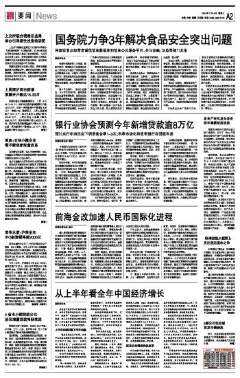 国务院力争3年解决食品安全突出问题