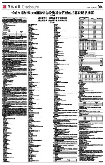 长城久泰沪深300指数证券投资基金更新的招募说明书摘要