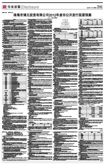股票代码:600656 股票简称:ST博元 珠海市博元投资有限公司2012年度非公开发行股票预案二○一二年七月四日 2012-07-06 来源:证券时报网 作者: