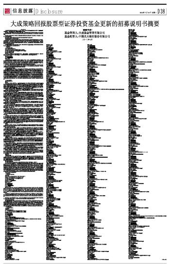 大成策略回报股票型证券投资基金更新的招募说明书摘要