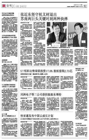 ST明科出售荣联投资17.6%股权套现2.75亿