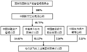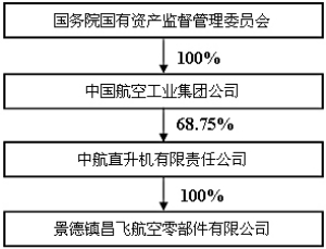 (上接D9版) (二)历史沿革 哈飞集团系根据原中航二集团《关于设立哈尔滨飞机制造有限公司的决定》(航空资【2002】773号)批准,于2002年12月由原中航二集团、中国华融资产管理公司(以下简称“华融公司”)、中国信达资产管理公司(以下简称“信达公司”)、中国东方资产管理公司(以下简称“东方公司”)共同出资设立的有限责任公司,注册资本777,225,159.00元,其中,原中航二集团出资额占注册资本的81.13%,华融公司出资额占注册资本的14.61%,信达公司出资额占注册资本的2.16%;东方公司出资额占注册资本的2.10%。 2004年7月,哈尔滨飞机制造有限责任公司更名为哈尔滨飞机工业集团有限责任公司。 2004年12月,根据原中航二集团《关于哈尔滨飞机工业集团有限责任公司的资本公积转增实收资本的批复》(航空资【2004】752号),哈飞集团以资本公积转增资本。本次转增后,哈飞集团的注册资本变更为108,402.9万元。 2008年8月,根据中国建设银行股份有限公司与信达公司签订的《终止债转股委托关系协议》及哈飞集团股东会决议,信达公司将持有哈飞集团2.16%的股权变更至中国建设银行股份有限公司名下。 2008年11月,原中航一集团与原中航二集团合并成立中航工业集团,原中航二集团持有的哈飞集团的股权由中航工业集团持有。 2011年6月,中航工业集团以所持哈飞集团81.12%股权作为出资,投入直升机公司,哈飞集团的控股股东变更为直升机公司。 (三)公司股权结构及产权控制关系结构图 截至本报告书摘要签署日,哈飞集团的产权控制关系如下: ■ (四)主营业务发展情况和主要财务数据 哈飞集团主营业务为航空产品的制造与销售,主要从事直升机的总装、试飞业务。哈飞集团最近三年的合并财务报表主要数据如下: 单位:元 ■ 注:以上财务数据未经审计。 (五)主要下属企业情况 截至本报告书摘要签署日,哈飞集团主要下属企业基本情况如下: ■ (六)哈飞集团与本公司的关联关系情况 哈飞集团是本公司实际控制人中航工业集团控制的下属公司,是本公司的关联公司。本次重大资产重组完成后,哈飞集团成为持有本公司5%以上股份的股东。 (七)哈飞集团向本公司推荐的董事、监事和高级管理人员 截至本报告书摘要签署日,哈飞集团未向本公司推荐董事、监事及高级管理人员。 (八)哈飞集团及主要管理人员最近五年受处罚情况 哈飞集团已出具书面声明,哈飞集团及其主要管理人员最近五年内未受到过影响本次交易的与证券市场相关的行政处罚、刑事处罚,亦不存在与经济纠纷有关的重大民事诉讼或者仲裁之情形。 第六节 交易标的情况 本次交易的标的资产为昌河航空100%股权、昌飞零部件100%股权、惠阳公司100%股权、天津公司100%股权和哈飞集团拟注入资产,具体情况如下: 一、标的资产基本情况 (一)昌河航空100%股权 1、基本情况 ■ 2、历史沿革 (1)公司的设立 2002年12月18日,根据原中航二集团《关于设立江西昌河航空工业有限公司的决定》(航空组筹[2002]642号),昌飞集团以净资产出资设立江西昌河航空工业有限公司,注册资本为113,170万元,昌飞集团持有其100%股权。中资资产评估有限公司对昌飞集团出资的净资产进行了评估,并出具了中资评报字(2002)第238号资产评估报告书。该次评估结果已经原中航二集团备案。 该次出资已经岳华会计师事务所有限责任公司出具的《岳总验字【2002】第B017号》验资报告审验。经验证,截至2002年6月30日,昌飞集团缴纳净资产1,131,705,475.88元,其中1,131,700,000元计入注册资本,5475.88元计入资本公积。 (2)2003年无偿划转及股东变更 2003年3月,原中航二集团下发《关于划转江西昌河航空工业有限公司股权的决定》(航空组筹[2003]135号文件),昌飞集团将其持有的昌河航空100%股权以无偿划转方式划转至原中航二集团。2003年3月,经原经贸委《关于同意中航二集团重组设立股份有限公司方案的批复》(国经贸企改[2003]262号)批准,原中航二集团将其持有昌河航空100%股权作为出资投入到中航科工。该次无偿划转及出资完成后,昌河航空注册资本仍为113,170万元,中航科工持有其100%股权。 (3)2006年减资 2006年9月,根据中航科工于2006年4月4日签署的第一届董事会2006年第二次会议《关于公司航空业务和汽车业务分业经营的决议》、国务院国资委于《关于江西昌河汽车股份有限公司、哈飞汽车股份有限公司国有股无偿划转有关问题的批复》(国资产权【2006】634号)、中国证监会《关于同意中国航空科技工业股份有限公司公告江西昌河汽车股份有限公司收购报告书并豁免其要约收购义务的批复》(证监会公司字[2006]146号)批准,中航科工对昌河航空实施减资,减少昌河航空注册资本920,382,245.99元,减资对价为昌河航空持有江西昌河汽车股份有限公司(上海证券交易所上市公司,现已更名为中航航空电子设备股份有限公司,股票代码600372)的71.57%股权。本次减资完成后,昌河航空的注册资本变更为211,317,754.01元,中航科工持有其100%股权。该次减资已经岳华会计师事务所有限责任公司陕西分所出具的岳陕验字(2006)第011号验资报告审验。 (4)2006年增资 2006年12月,根据中航科工《关于同意昌河航空增加资本金的批复》(中航科工财【2006】6号),中航科工增加昌河航空注册资本1.7亿元。本次增资完成后,昌河航空的注册资本变更为381,317,754.01元,中航科工持有其100%股权。该次增资已经