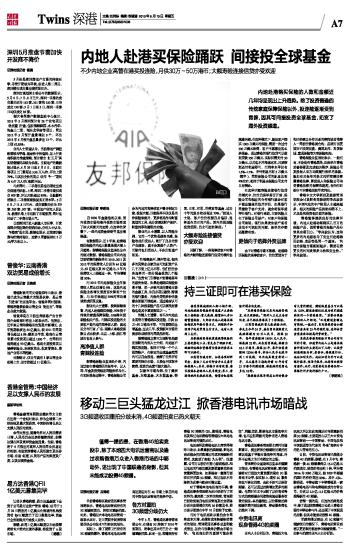 内地人赴港买保险踊跃 间接投全球基金