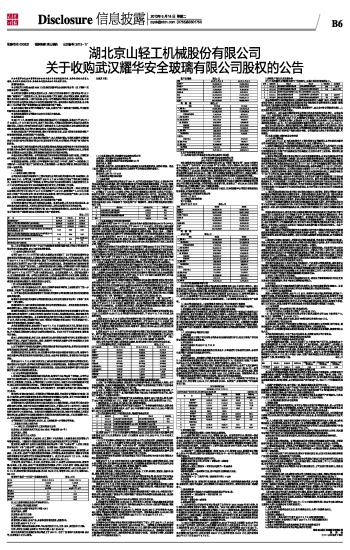 证券代码:000821 证券简称:京山轻机 公告编号:2013-17 湖北京山轻工机械股份有限公司关于收购武汉耀华安全玻璃有限公司股权的公告 2013-05-14 来源:证券时报网 作者: