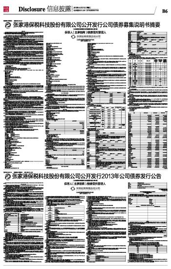 证券代码:600794 股票简称:保税科技 编号:临2013-032 张家港保税科技股份有限公司公开发行2013年公司债券发行公告(江苏省张家港保税区北京路保税科技大厦六楼) 2013-05-21 来源:证券时报网 作者: