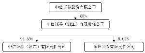 二、分立方案概述 2013年5月21日,公司第五届董事会第十四次会议审议通过了《关于拟对全资子公司中信证券(浙江)有限责任公司进行重组的议案》及《关于全资子公司中信证券(浙江)有限责任公司分立方案的议案》,同意中信证券(浙江)的重组意向方案及分立方案。 (一)分立方式和目的 为推动公司对中信证券(浙江)的重组,公司拟对中信证券(浙江)实施存续分立,以中信证券(浙江)的部分资产和负债分立新设一家公司——金通证券有限责任公司(暂定名,以工商行政主管部门预核准的名称为准,以下简称“金通证券”),主要经营原中信证券(浙江)的温州苍南、台州天台2家证券营业部及相关业务;中信证券(浙江)继续存续,主要经营原中信证券(浙江)剩余的55家证券营业部及相关业务。分立后的中信证券(浙江)和金通证券将按照分立方案的约定依法承继分立前中信证券(浙江)的资产、负债、权益、业务和人员。分立后的存续公司和新设公司均为公司的全资子公司。 中信证券(浙江)分立情况如下图所示: ■ (二)分立后新设及存续公司的资本结构