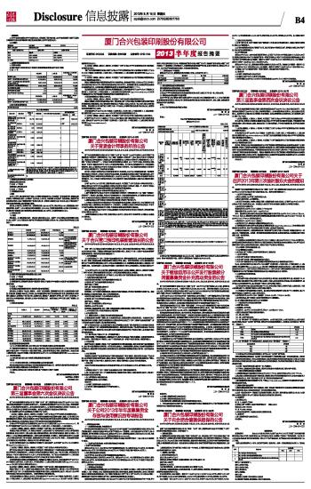 证券代码:002228 证券简称:合兴包装 公告编号:2013-045 厦门合兴包装印刷股份有限公司2013半年度报告摘要 2013-08-15 来源:证券时报网 作者: