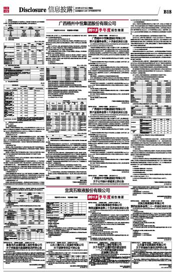 证券代码:600252 证券简称:中恒集团 广西梧州中恒集团股份有限公司2013半年度报告摘要 2013-08-15 来源:证券时报网 作者: