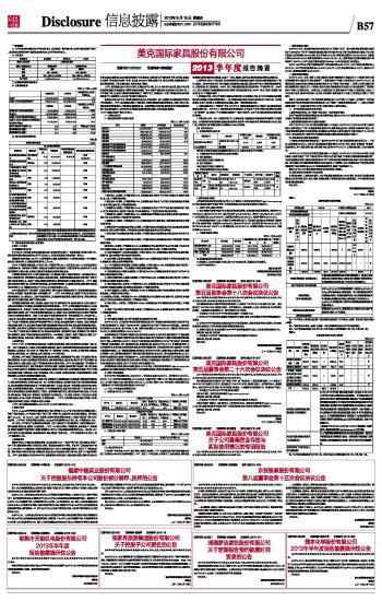 证券代码:600337 证券简称:美克股份 美克国际家具股份有限公司2013半年度报告摘要 2013-08-15 来源:证券时报网 作者: