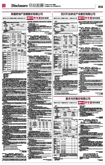 证券代码:002259 证券简称:升达林业 公告编号:2013-038 四川升达林业产业股份有限公司2013半年度报告摘要 2013-08-15 来源:证券时报网 作者: