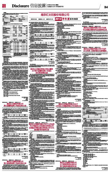 证券代码:000525 证券简称:红 太 阳 公告编号:2013-020 南京红太阳股份有限公司2013半年度报告摘要 2013-08-16 来源:证券时报网 作者: