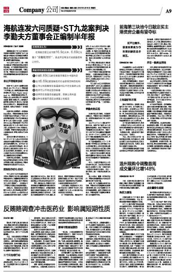 海航连发六问质疑*ST九龙案判决 李勤夫方董事会正编制半年报