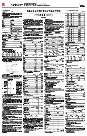 基金管理人:长盛基金管理有限公司 基金托管人:中国农业银行股份有限公司 送出日期:2013年8月29日 §1 重要提示 1.1 重要提示 基金管理人的董事会、董事保证本报告所载资料不存在虚假记载、误导性陈述或重大遗漏,并对其内容的真实性、准确性和完整性承担个别及连带的法律责任。本半年度报告已经三分之二以上独立董事签字同意,并由董事长签发。 基金托管人中国农业银行股份有限公司(以下简称“中国农业银行”)根据本基金合同规定,于2013年8月28日复核了本报告中的财务指标、净值表现、利润分配情况、财务会计报告、投资组合报告等内容,保证复核内容不存在虚假记载、误导性陈述或者重大遗漏。 基金管理人承诺以诚实信用、勤勉尽责的原则管理和运用基金资产,但不保证基金一定盈利。 基金的过往业绩并不代表其未来表现。投资有风险,投资者在作出投资决策前应仔细阅读本基金的招募说明书及其更新。 本半年度报告摘要摘自半年度报告正文,投资者欲了解详细内容,应阅读半年度报告正文。 本报告中财务资料未经审计。 本报告期自2013年1月1日起至6月30日止。 §2 基金简介 2.1 基金基本情况 ■ 2.2 基金产品说明 ■ 2.3 基金管理人和基金托管人 ■ 2.4 信息披露方式 ■ §3 主要财务指标和基金净值表现 3.1 主要会计数据和财务指标 金额单位:人民币元 ■ 注:1、所述基金业绩指标不包括持有人认购或交易基金的各项费用,计入费用后实际收益水平要低于所列数字。 2、本期已实现收益指基金本期利息收入、投资收益、其他收入(不含公允价值变动收益)扣除相关费用后的余额,本期利润为本期已实现收益加上本期公允价值变动收益。 3、期末可供分配利润,采用期末资产负债表中未分配利润与未分配利润中已实现部分的孰低数(为期末余额,不是当期发生数)。表中的“期末”均指本报告期最后一日,即6月30日。 3.2 基金净值表现 3.2.1 基金份额净值增长率及其与同期业绩比较基准收益率的比较 ■ 注:本基金业绩比较基准=中信标普全债指数收益率×92%+中信标普A股综合指数收益率×8%。 本基金业绩比较基准的构建:本基金为增强性指数化债券型投资基金,对目标指数的投资在资产配置中最低比例为64%,股票资产配置最高比例为16%,现金持有最低比例为3%。由于本基金主要投资于债券,股票投资是作为增强型投资提高收益的一种手段,预计股票投资比例的平均值为8%,因此将基金业绩比较设定为:中信标普全债指数收益率×92%+中信标普A股综合指数收益率×8%。目前投资人可以通过登录中信证券研究网获取中信标普全债指数和中信标普A股综合指数的相关信息。如果中信指数体系信息发布渠道增加,本基金管理人将另行公告。 本基金对业绩比较基准采用每日再平衡的计算方法。 3.2.2 自基金合同生效以来基金份额累计净值增长率变动及其与同期业绩比较基准收益率变动的比较 ■ §4 管理人报告 4.1 基金管理人及基金经理情况 4.1.1 基金管理人及其管理基金的经验 本基金管理人为长盛基金管理有限公司(以下简称“公司”),成立于1999年3月26日,是国内最早成立的十家基金管理公司之一。公司注册资本为人民币15000万元。公司注册地在深圳,总部设在北京,并在北京、上海、郑州、杭州、成都设有分公司。目前,公司股东及其出资比例为:国元证券股份有限公司(以下简称“国元证券”)占注册资本的41%,新加坡星展银行有限公司占注册资本的33%,安徽省信用担保集团有限公司占注册资本的13%,安徽省投资集团控股有限公司占注册资本的13%。公司获得首批全国社保基金、合格境内机构投资者和特定客户资产管理业务资格。截至2013年6月30日,基金管理人共管理两只封闭式基金、二十七只开放式基金,并管理多个全国社保基金组合和专户产品。公司同时兼任境外QFII基金和专户理财产品的投资顾问。 4.1.2 基金经理(或基金经理小组)及基金经理助理简介 ■ 注:1、上表基金经理及基金经理助理的任职日期和离任日期均指公司决定确定的聘任日期和解聘日期。 2、“证券从业年限”中“证券从业”的含义遵从行业协会《证券业从业人员资格管理办法》的相关规定。 4.2 管理人对报告期内本基金运作遵规守信情况的说明 本报告期内,本基金管理人严格按照《证券投资基金法》及其各项实施准则、《长盛中信全债指数增强型债券投资基金基金合同》和其他有关法律法规、监管部门的相关规定,依照诚实信用、勤勉尽责的原则管理和运用基金资产,在严格控制投资风险的基础上,为基金份额持有人谋求最大利益,没有损害基金份额持有人利益的行为。 4.3 管理人对报告期内公平交易情况的专项说明 4.3.1 公平交易制度的执行情况 报告期内,公司严格执行《公司公平交易细则》各项规定,在研究、投资授权与决策、交易执行等各个环节,公平对待旗下所有投资组合,包括公募基金、社保组合、特定客户资产管理组合等。具体如下: 研究支持,公司旗下所有投资组合共享公司研究部门研究成果,所有投资组合经理在公司研究平台上拥有同等权限。 投资授权与决策,公司实行投资决策委员会领导下的投资组合经理负责制,各投资组合经理在投资决策委员会的授权范围内,独立完成投资组合的管理工作。各投资组合经理遵守投资信息隔离墙制度。 交易执行,公司实行集中交