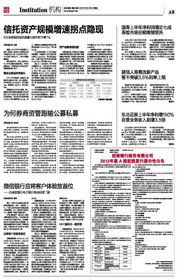 东北证券上半年净利增150% 自营业务收入剧增3.5倍 2013-08-29 来源:证券时报网 作者:杨庆婉