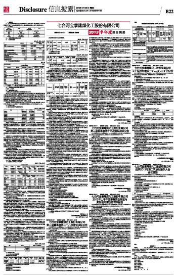 七台河宝泰隆煤化工股份有限公司2013半年度报告摘要