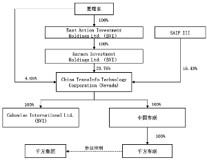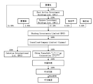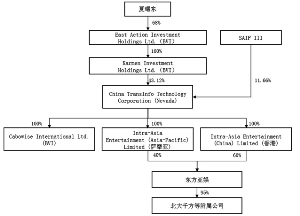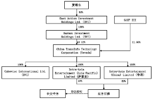 (上接B17版) 本次预估的基本模型为: ■ C1:估值对象基准日存在的流动性溢余或非经营性资产(负债)价值; C2:估值对象基准日存在的非流动性溢余或非经营性资产(负债)价值; I:估值对象基准日的长期投资价值; D:估值对象的付息债务价值。 (2)收益指标 本次预估,使用企业的自由现金流量作为估值对象经营性资产的收益指标,其基本定义为: R=净利润+折旧摊销+扣税后付息债务利息-追加资本 根据估值对象的经营历史以及未来市场发展等,估算其未来经营期内的自由现金流量。将未来经营期内的自由现金流量进行折现并加和,测算得到企业的经营性资产价值。 4、预估参数选择的合理性说明 本次预估采用资本资产加权平均成本模型(WACC)确定折现率r: ■ rf:无风险报酬率; rm:市场期望报酬率; ε:估值对象的特性风险调整系数; βe:估值对象权益资本的预期市场风险系数; ■ 式中: K:未来预期股票市场的平均风险值,通常假设K=1; βx:可比同类公司股票(资产)的历史市场平均风险系数; Di、Ei:分别为可比公司的付息债务与权益资本。 折现率的确定 (1)无风险收益率rf,参照国家近五年发行的中长期国债利率的平均水平,按照十年期以上国债利率平均水平确定无风险收益率rf的近似,即rf=3.89%。 中长期国债利率 ■ (2)市场期望报酬率rm,一般认为,股票指数的波动能够反映市场整体的波动情况,指数的长期平均收益率可以反映市场期望的平均报酬率。通过对上证综合指数自1992年5月21日全面放开股价、实行自由竞价交易后至2012年12月31日期间的指数平均收益率进行测算,得出市场期望报酬率的近似,即:rm=10.53%。 本次预估确定的折现率约为12%。 本次预评估北京掌城的预期未来收入增长率如下: ■ (十二)北京掌城未来盈利能力预测 北京掌城具有良好的盈利性,相关资产进入上市公司后,将扭转上市公司经营性亏损的局面,增强上市公司的盈利能力。 截至本预案出具之日,北京掌城的盈利预测工作尚未完成,盈利预测中包括非经常性损益的预测。本公司将在本预案披露后尽快完成北京掌城的盈利预测工作,详细情况将在经审核的盈利预测中予以披露。 在北京掌城的审计、评估及盈利预测等工作完成后,本公司将另行召开董事会、股东大会审议本次交易方案及其它相关事项。北京掌城经审计的历史财务数据、资产评估结果以及经审核的盈利预测数据将在重大资产重组报告书(草案)中予以披露。 (十三)北京掌城其他情况说明 1、主要资产的他项权利情况 截至本预案出具之日,北京掌城的主要资产不存在抵押、质押等他项权利。 2、对外担保情况 截至本预案出具之日,北京掌城不存在对外担保。 3、关联方非经营性占用资金情况 截至本预案出具之日,北京掌城不存在资金被控股股东、实际控制人及其关联方非经营性占用的情形。 4、安全生产和环保情况 截至本预案出具之日,北京掌城未有发生安全生产事故的情况出现,公司产品属于软件业,不涉及项目环评等事宜。 5、未决诉讼、仲裁、处罚情况 截至本预案出具之日,北京掌城不涉及作为被诉方的、尚未了结的重大诉讼、仲裁或行政处罚。 6、北京掌城最近三年评估、增资或改制的情况 (1)最近三年的评估情况 北京掌城最近三年未进行过评估。 (2)最近三年增资或改制的情况 2011年3月22日,北京掌城股东千方集团决定增加世纪盈立为新股东,北京掌城注册资本增加至1,960万元。 (十四)拟购买资产为股权时的说明 1、本次交易拟购买资产为控股权 本次重组上市公司拟发行股份直接购买北京掌城48.98%股权。千方集团持有北京掌城51.02%股权,上市公司拟购买千方集团100%股权。本次交易完成后,上市公司将持有北京掌城100%股权。 2、交易对方合法拥有标的资产的完整权利 截至本预案出具日,世纪盈立合法拥有北京掌城的股权,且股权权属清晰,不存在被冻结、查封或设定质押等限制或禁止转让的情形。 3、北京掌城不存在出资不实或影响其合法存续的情况 北京掌城不存在出资不实或者影响其合法存续的情况。 4、本次交易符合北京掌城股权转让前置条件 千方集团和世纪盈立合计持有北京掌城100%的股权,北京掌城已召开股东会审议同意世纪盈立将所持有的北京掌城全部股权对外转让。 第七节 千方集团返程投资架构的建立及废止过程 2007年5月,北大千方通过反向收购一家注册于美国特拉华州公司Intra-Asia Entertainment Corporation在美国OTCBB挂牌上市交易,实现了北大千方的境外上市。2009年2月,千方集团建立了相关境外上市、返程投资的VIE架构,并于2012年10月完成私有化交易,从NASDAQ退市。2013年9月,千方集团废止了该VIE架构。 自2011年下半年始,中小市值中概股普遍在美遭受双重标准差别对待,CTFO受此影响股票交易清淡,股价低迷,无法反映公司真实价值;同时千方集团主要业务及管理团队均在中国境内,每年因CTFO在美上市所发生的费用较高,给千方集团带来较大的财务和经营管理负担;在美国上市中小规模中国企业不被美国资本市场看好的背景下,千方集团及CTFO无法充分发挥上市公司再融资功能,决定实施私有化交易,并于2012年10月完成从NASDAQ退市,转为非上市私营公司。 私有化完成后,千方集团在规划企业未来进一步发展的过程中明确了智能交通行业近几年处于飞速发展阶段,其经营的智能交通板块业务成熟,具备良好的增长性,必须继续