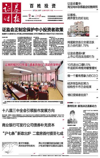 证监会重申: 淘宝网未取得基金销售牌照 >>>A2 玩客栈, 跨界营生的好去处 >>>A10 鸡蛋期货首日交易活跃 主力合约涨1.79% >>>A2 证监会通报4家 上市公司违法违规行为 >>>A2 10月进出口增6.5% 年底前料将维持缓慢增长 >>>A2 做一个富有想象力的CEO >>>A7 经济转型尚在努力 结构性牛市岂会结束 >>>A8 情妇受贿谁担责? >>>A4 本版导读:
