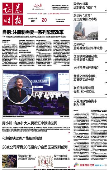 国债收益率 近期能否“破5”? >>>A7 深圳闹“地荒” 房企抢食旧改市场 >>>A9 风格轮动 蓝筹基金发起冬季攻势 >>>A17 伪互联网金融起底: 传统渠道大搬家 >>>A6 比特币是神还是鬼? >>>A3 丝绸之路概念飘红 政策落实成关键 >>>A14 联想开卖葡萄酒 每瓶180~600元 >>>A10 本版导读: