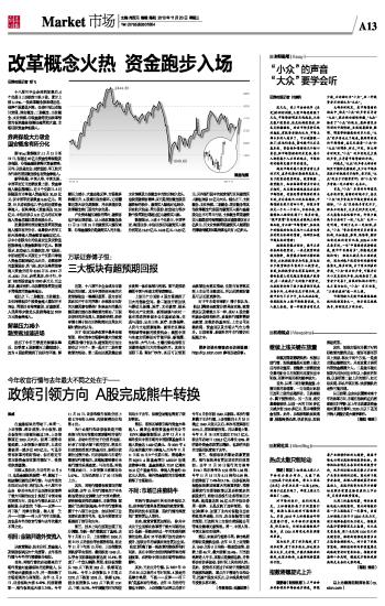 改革概念火热 资金跑步入场 2013-11-20 来源:证券时报网 作者:邓飞