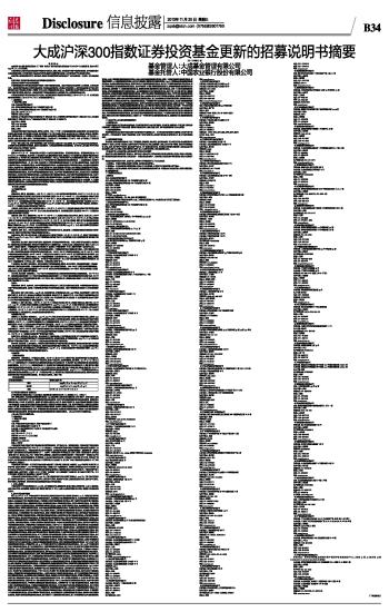 大成沪深300指数证券投资基金更新的招募说明书摘要