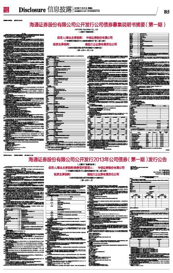 海通证券股份有限公司公开发行公司债券募集说明书摘要(第一期) 2013-11-21 来源:证券时报网 作者: