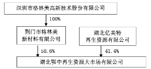 证券代码:002340 证券简称:格林美 公告编号:2013-080 深圳市格林美高新技术股份有限公司 关于孙公司签订土地使用权转让合同 涉及关联交易的公告 本公司及董事会全体成员保证公告内容真实、准确和完整,不存在虚假记载、误导性陈述或者重大遗漏。 一、关联交易概述 深圳市格林美高新技术股份有限公司(以下简称“公司”)全资子公司荆门市格林美新材料有限公司(以下简称“荆门格林美”)与湖北亿美特再生资源有限公司(以下简称“亿美特”),共同出资设立湖北鄂中再生资源大市场有限公司(以下简称“孙公司”或“鄂中再生”),双方于2013年7月12日签订《合资协议书》,并约定在合资公司成立后三个月内,由合资公司与亿美特签订130400480-2地块的转让协议,具体详见2013年7月16日刊登在《证券日报》、《证券时报》、《上海证券报》、《中国证券报》和巨潮资讯网(http://www.cninfo.com.cn)上的《关于子公司对外投资的公告》。 2013年11月22日,鄂中再生与亿美特就上述地块签订了土地使用权转让合同。亿美特持有鄂中再生41.4%的股权,上述签订土地使用权转让合同构成关联交易。根据《上市公司重大资产重组管理办法》的规定,本次关联交易不构成重大资产重组。 公司于2013年11月22日审议通过了《关于孙公司签订土地使用权转让合同涉及关联交易的议案》,根据公司《章程》、《关联交易内部控制及决策制度》的相关规定,本次关联交易不属于重大关联交易,不需要提交股东大会审议。 二、关联方基本情况 1、关联关系 鄂中再生由公司全资子公司荆门格林美和亿美特共同投资设立,具体如下: ■ 2、关联方基本情况 关联方名称:湖北亿美特再生资源有限公司 注册地址: 荆门市东宝区长宁大道29号 法定代表人姓名: 李世宏 注册(实收)资本:5300万元人民币 公司类型:有限责任公司(私营) 经营范围:一般经营项目:再生资源回收、加工、利用、拆解,工程拆迁(持有效资质证经营),二手家电回收、销售、拆解,二手汽车回收、销售;超储物资、社会闲置物资,罚没抵押物资、生产性和生活性物资(以上均不含专项规定项目)、五金交电、日用百货、家俱、服装鞋帽、汽车配件、选材利用、柜台租赁、通讯器材(不含发射装置)零售,旧货信息。 亿美特近一年又一期的财务数据如下: