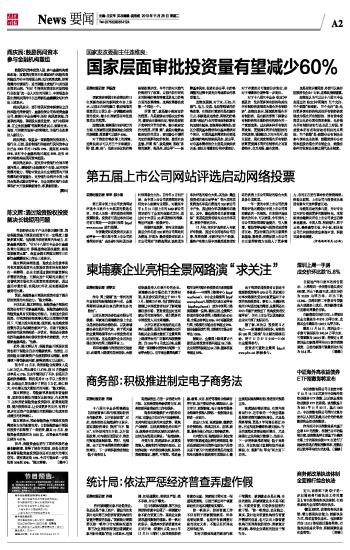 商务部:积极推进制定电子商务法 2013-11-26 来源:证券时报网 作者:许岩