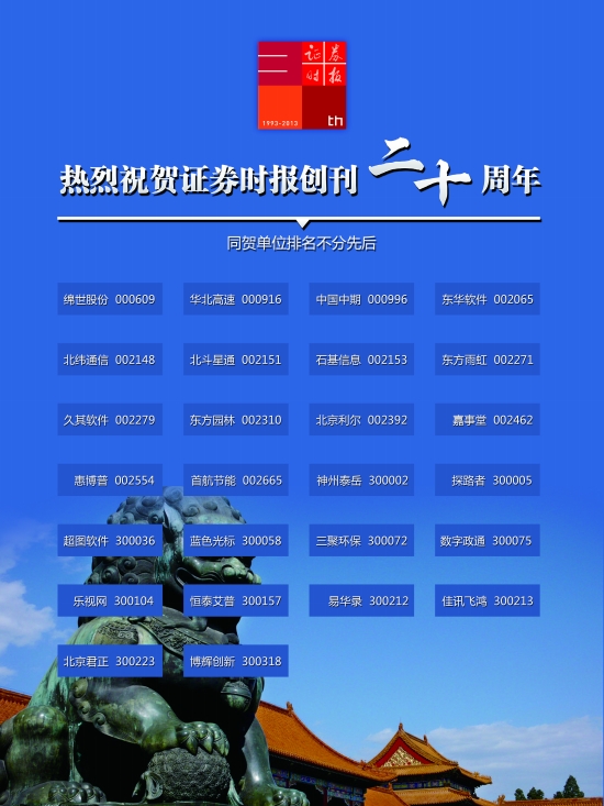 [AD]北京上市公司热烈祝贺证券时报创刊二十周年