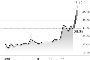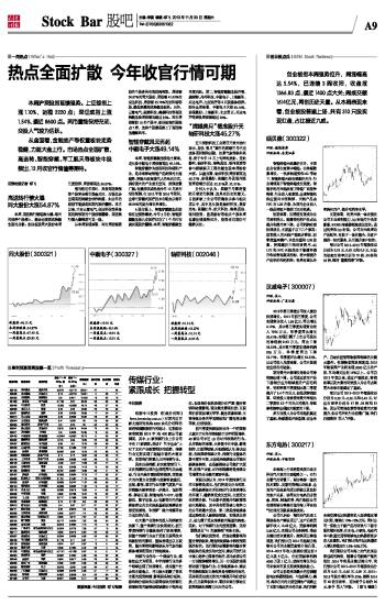 证券时报记者 邓飞 高送转行情火爆 同大股份大涨54.87% 本周,高送转行情堪称火爆。每天的涨停个股榜上,都会出现高送转概念股的身影。创业板股同大股份本周三度涨停,周涨幅高达54.87%。 每当临近年底时,具备高送转预期个股常会吸引资金关注,市场总会出现高送转概念炒作热潮,如去年的联创节能就是短期内股价翻倍。本月以来,已有云意电气、奋达科技等具备高送转预期的个股涨幅翻番,高送转行情火爆程度可见一斑。 从本周表现来看,两市周涨幅居前的个股多具有高送转预期。周涨幅54.87%的同大股份、周涨幅41.93%的奋达科技、周涨幅35.78%的安科瑞等股,都是隶属高送转概念板块。另外,云意电气、麦捷科技、美晨科技等高送转概念股周涨幅均超过35%。两市周涨幅前10名个股中,创业板高价股独占7席,这些个股都是搭上了高送转这趟顺风车。 智能穿戴风云再起 中颖电子大涨49.14% 本周,智能穿戴概念股卷土重来,龙头股中颖电子周涨幅高达49.14%。 智能穿戴作为前沿科技和朝阳产业,是未来移动智能产品发展的主流趋势,将极大改变现代人的生活方式,拥有强大的产业成长空间,发展前景广阔。有美国权威机构今年10月发布报告预测,在2012年到2016年期间,全球可穿戴式医疗技术市场会以每年49.94%的复合增长率增长。 A股市场上,智能穿戴概念此前曾有过强势爆发。今年5月份,智能穿戴概念股九安医疗仅花了1个月时间就实现股价翻番。本周,智能穿戴概念再度活跃。周二,智能穿戴概念股井喷,康耐特、丹邦科技、中颖电子、上海新阳、共达电声、九安医疗等6只股集体涨停。综合全周来看,中颖电子大涨49.14%,表现最好;上海新阳、北京君正、共达电声等多股周涨幅超过20%。 “嫦娥奔月”概念股升天 轴研科技大涨45.27% 近日国防科技工业局召开发布会时表示,肩负“落月”重任的嫦娥三号已完成各项研制和试验,如果气象等条件具备,将于今年12月上旬择机发射。受此影响,轴研科技、海格通信、银河投资等参与嫦娥探月工程的概念股本周纷纷大涨。从盘面看,轴研科技周涨幅高达45.27%,表现最好;高德红外及银河投资周涨幅分别达32.51%及32.31%。 分析人士认为,嫦娥三号即将登陆月球进行探测,这具有历史性意义。目前多家上市公司明确表示参与相关项目中,其中龙头股是轴研科技,奥普光电、高德红外、航天科技、海格通信、银河投资、蓝星新材等相关个股本周也都出现强势拉升,投资者后期仍可继续关注。