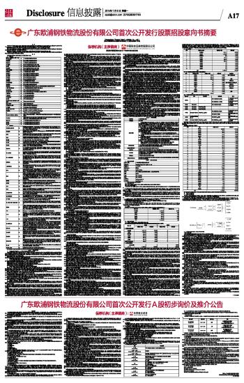 广东欧浦钢铁物流股份有限公司首次公开发行A股初步询价及推介公告