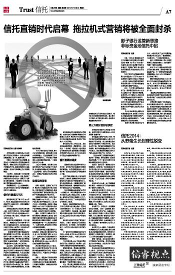 信托直销时代启幕 拖拉机式营销将被全面封杀 2014-01-08 来源:证券时报网 作者:刘雁 杨卓卿