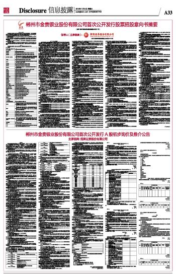 郴州市金贵银业股份有限公司首次公开发行股票招股意向书摘要